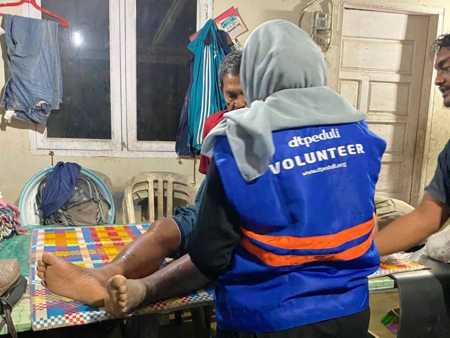 DTPEDULI.ORG | ACEH TAMIANG – Di tengah gelap gulita pascabanjir bandang yang merendam Aceh Tamiang, Sejak Sabtu (6/12/2025) DT Peduli membuka sebuah posko kesehatan darurat untuk membantu warga yang hingga kini masih kesulitan mendapatkan layanan medis. Listrik yang belum kembali menyala membuat suasana desa gelap sepenuhnya, sementara akses menuju Puskesmas belum memungkinkan karena fasilitas kesehatan itu belum kembali beroperasi.