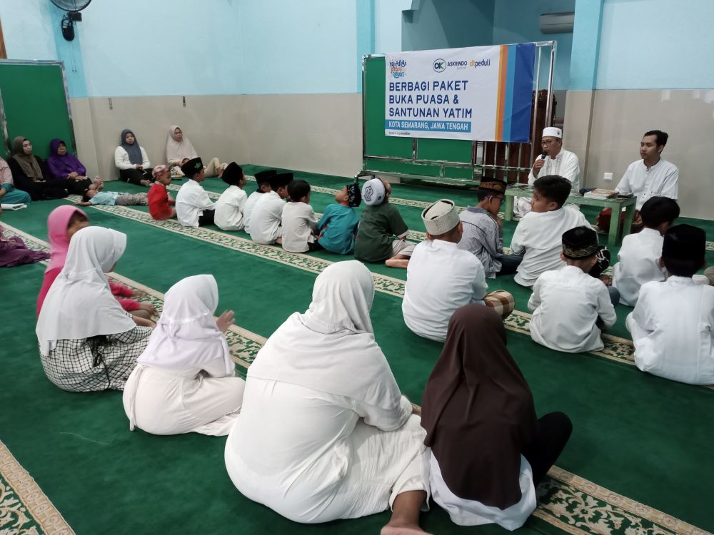 DTPEDULI.ORG | SEMARANG – Askrindo Syariah Semarang bekerja sama dengan DT Peduli Jawa Tengah (Jateng) menyelenggarakan kegiatan santunan dan buka puasa bersama anak yatim yang bertempat di Masjid Al Huda Rogojembangan, tepatnya di Kelurahan Tandang, Kecamatan Tembalang, Kota Semarang, Jumat (13/3/2026). Kegiatan dimulai pada pukul 16.00 WIB ini diikuti oleh 28 anak yatim dari wilayah Kelurahan Tandang.
