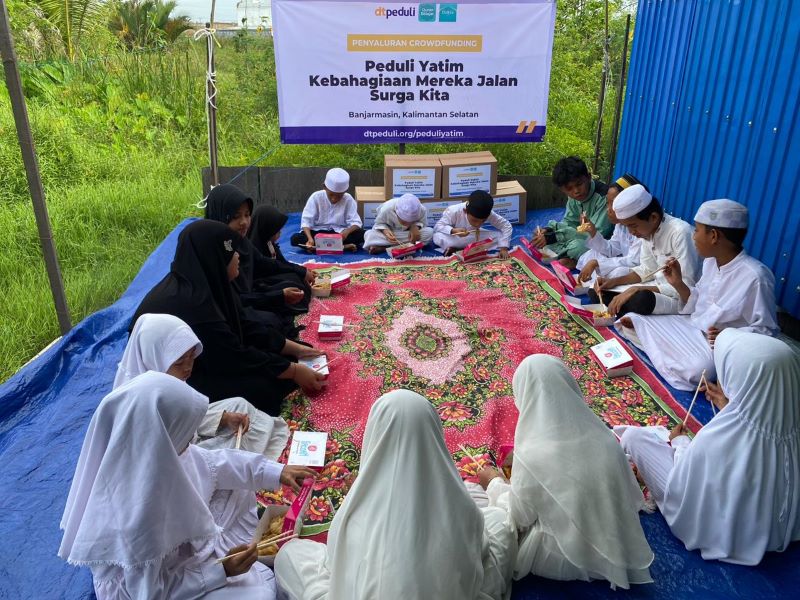 DTPEDULI.ORG | BANJARMASIN – DT Peduli berkolaborasi dengan Qur’an Belajar Indonesia dan Dzikra menyelenggarakan kegiatan sosial bertajuk "Peduli Yatim Kebahagiaan Mereka Jalan Surga Kita" pada Sabtu (04/10/2025). Acara yang bertujuan memberikan semangat dan kebahagiaan ini dihadiri oleh 15 sahabat yatim dan duafa di Halaman Rumah Pendamping Adik-adik Yatim.