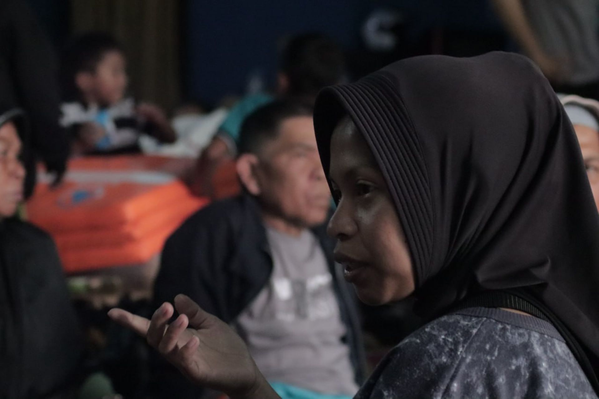 Di sudut lain kantor desa, Tini duduk bersama keluarganya. Ia mengingat betul malam-malam panjang sebelum bencana terjadi.