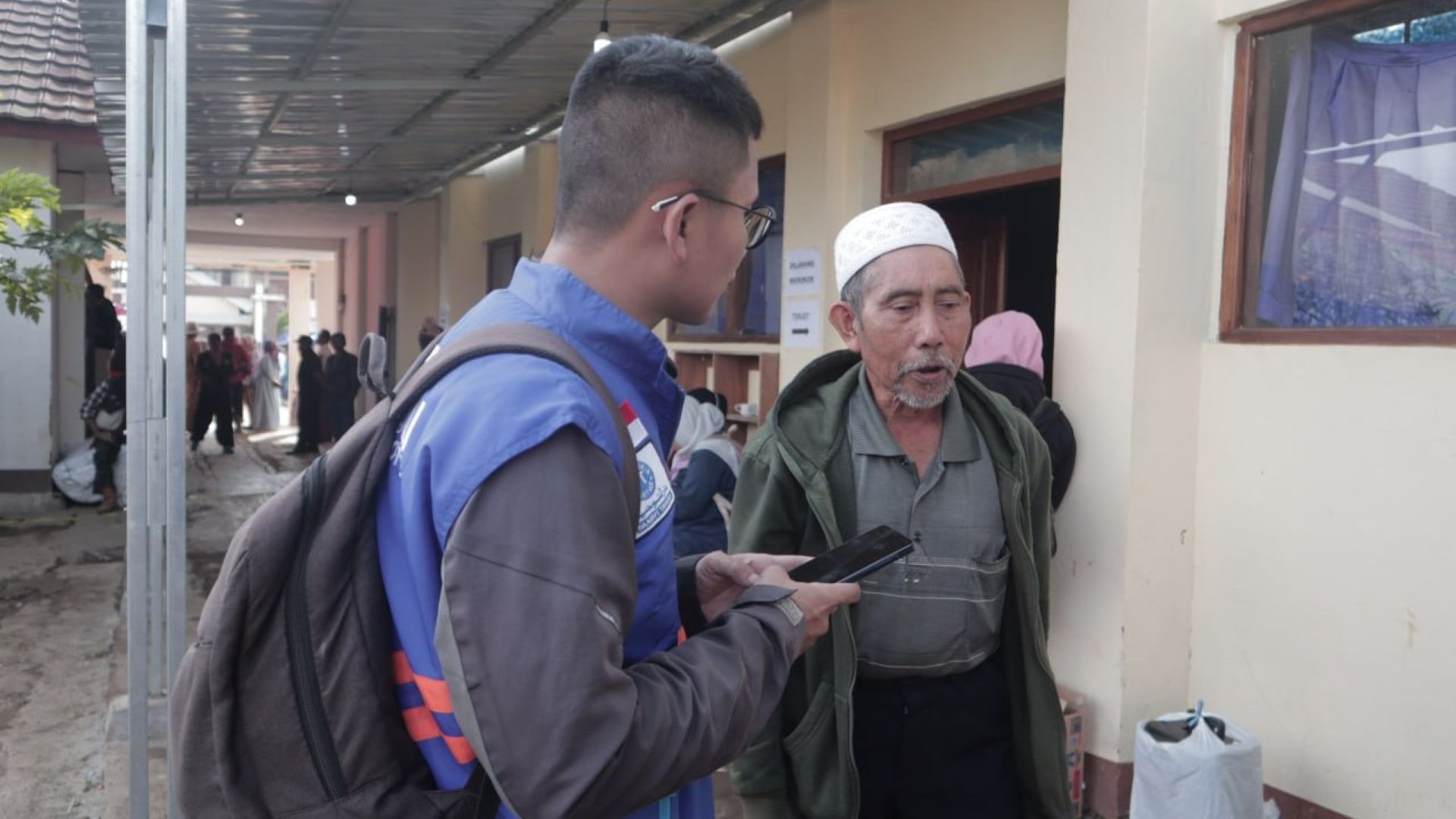 Ade Olib adalah salah satunya. Saat ditemui Senin (26/1/2026) Lelaki lanjut usia itu sedang berdiri di antara aula desa dan masjid, tampak sedang bercerita saat longsor terjadi. Rumahnya memang tidak hancur total, tapi pengalaman menghadapi air bah membuatnya memilih mengungsi.