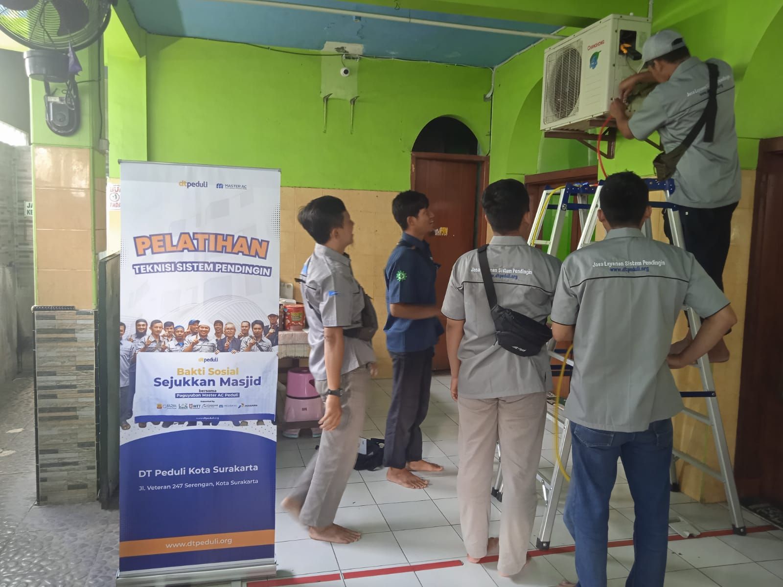 Rangkaian pelatihan ditutup dengan bakti sosial servis AC gratis di Masjid Darissalam, Cemani, Sukoharjo. Kegiatan ini dirancang agar para peserta tidak hanya mahir secara teknis, tetapi juga memiliki kepekaan sosial dan semangat berkhidmat kepada masyarakat.
