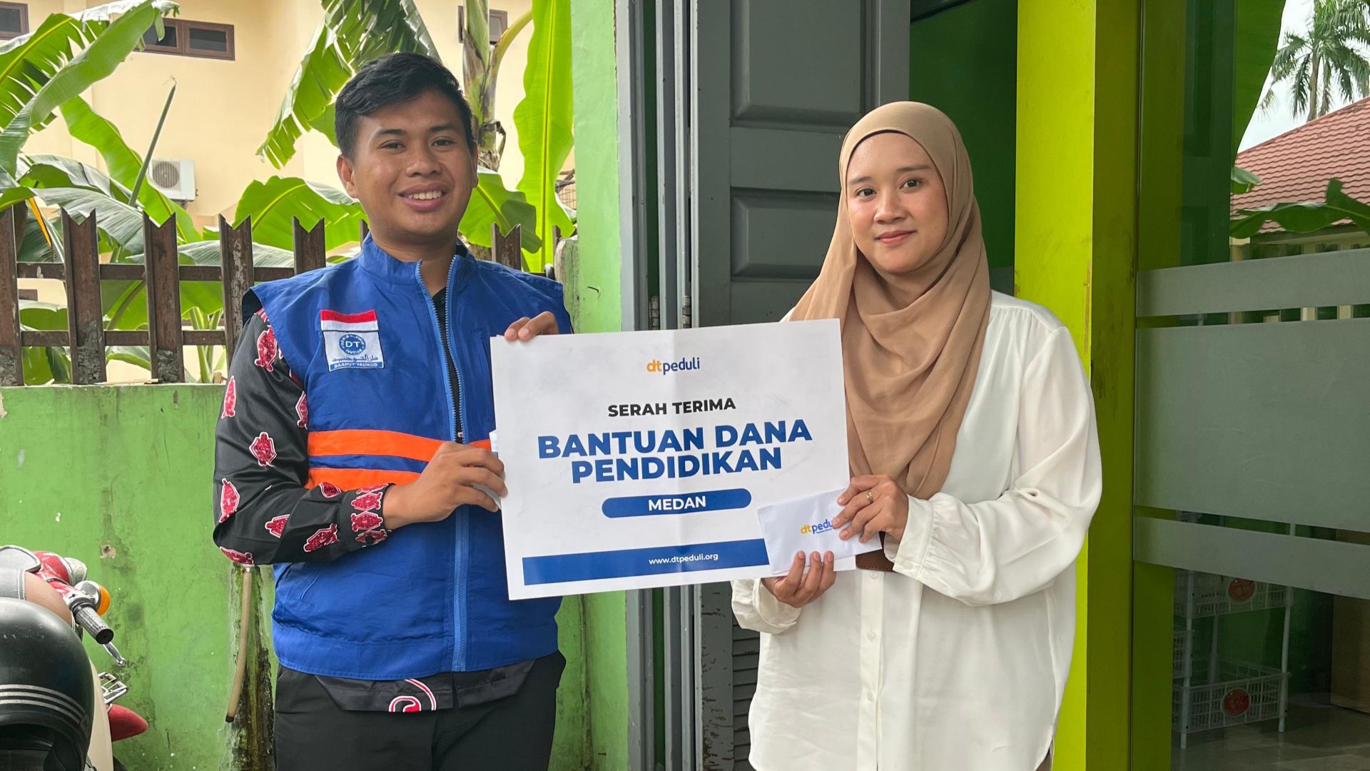 DTPEDULI.ORG | MEDAN – DT Peduli Sumatera Utara (Sumut) menyalurkan bantuan dana pendidikan kepada dua penerima manfaat di Kota Medan pada Rabu (10/9/2025). Bantuan ini merupakan wujud nyata komitmen DT Peduli dalam mendukung keberlanjutan pendidikan bagi masyarakat yang membutuhkan.