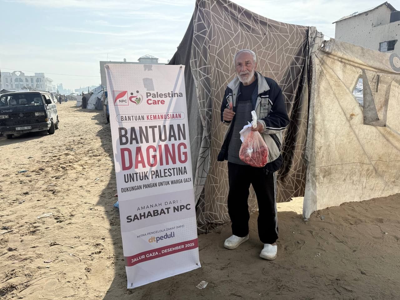 DTPEDULI.ORG | GAZA – DT Peduli bersama Nusantara Palestina Center (NPC) kembali mempertegas komitmennya dalam mendukung ketahanan pangan masyarakat Palestina. Pada akhir Desember 2025, kedua lembaga menyalurkan 500 kilogram daging segar kepada 250 Kepala Keluarga (KK) yang bertahan di Jalur Gaza.