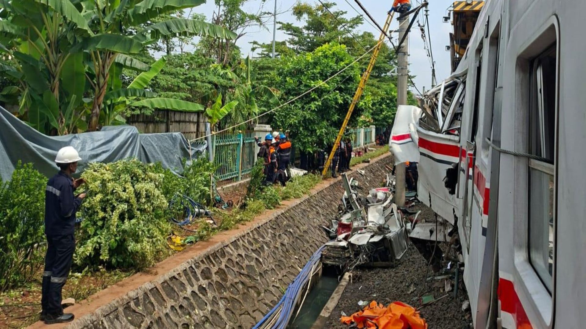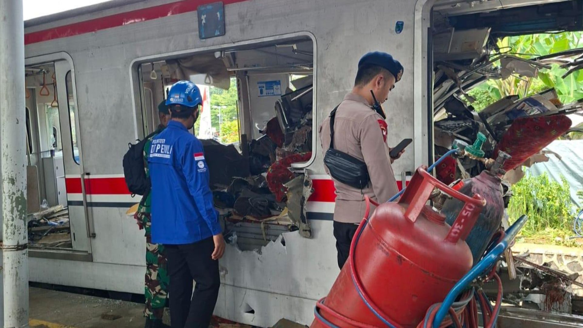 Selasa pagi, tim relawan DT Peduli Bogor telah berada di lokasi kejadian. Di tengah debu besi dan aroma menyengat, Maribah, Relawan DT Peduli, berdiri terpaku menatap gerbong terakhir KRL yang ringsek tak berbentuk.