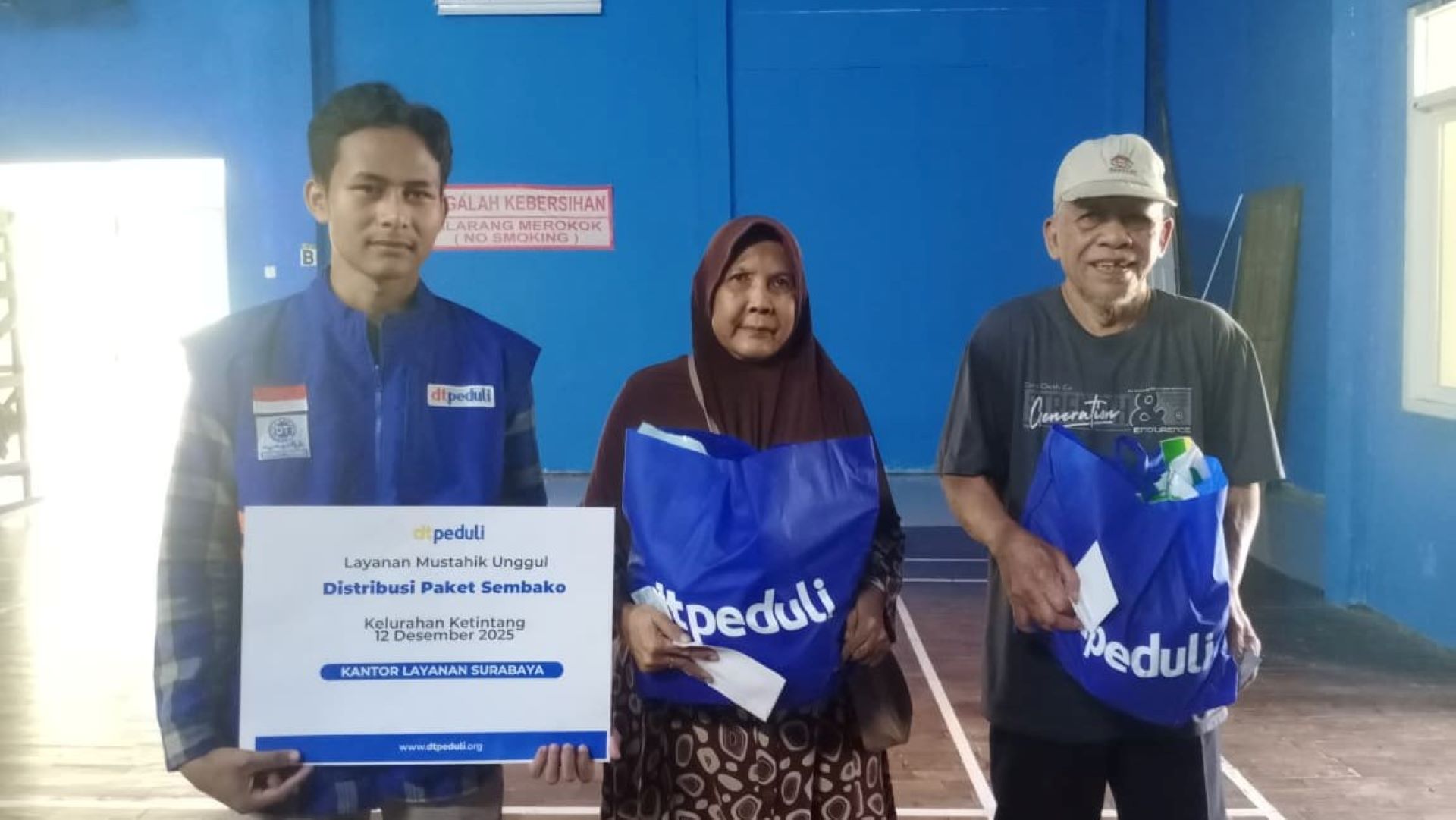DTPEDULI.ORG | SURABAYA – DT Peduli bersinergi dengan Pemerintah Kelurahan Ketintang menyalurkan 52 paket sembako bagi warga prasejahtera di Balai Kelurahan Ketintang, Surabaya, Jumat (12/12/2025). Aksi sosial ini menyasar kelompok masyarakat rentan, mulai dari lansia, keluarga prasejahtera, hingga pekerja berpenghasilan rendah.