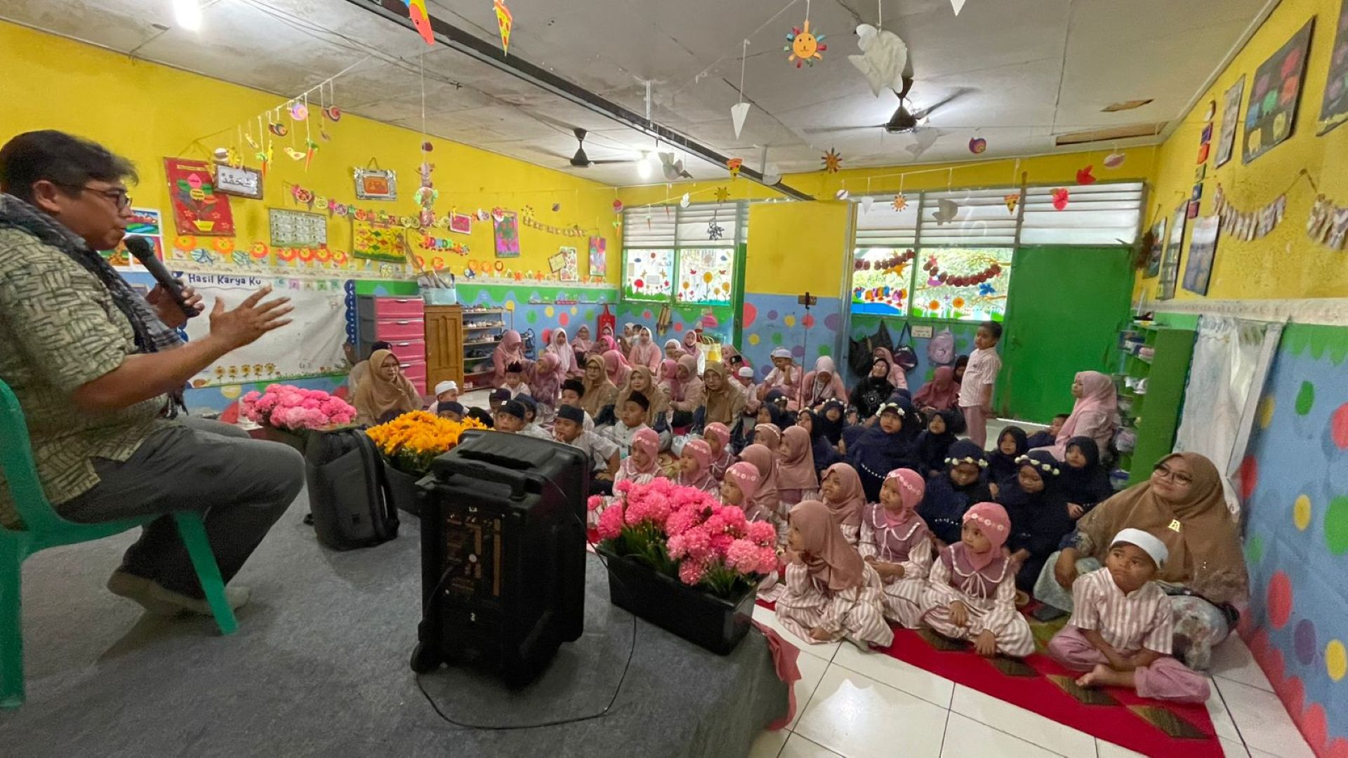 Kegiatan yang berlangsung meriah ini bertujuan untuk menyampaikan nilai-nilai kebaikan, kejujuran, dan semangat berbagi kepada para siswa dengan metode yang menyenangkan dan mudah dipahami.