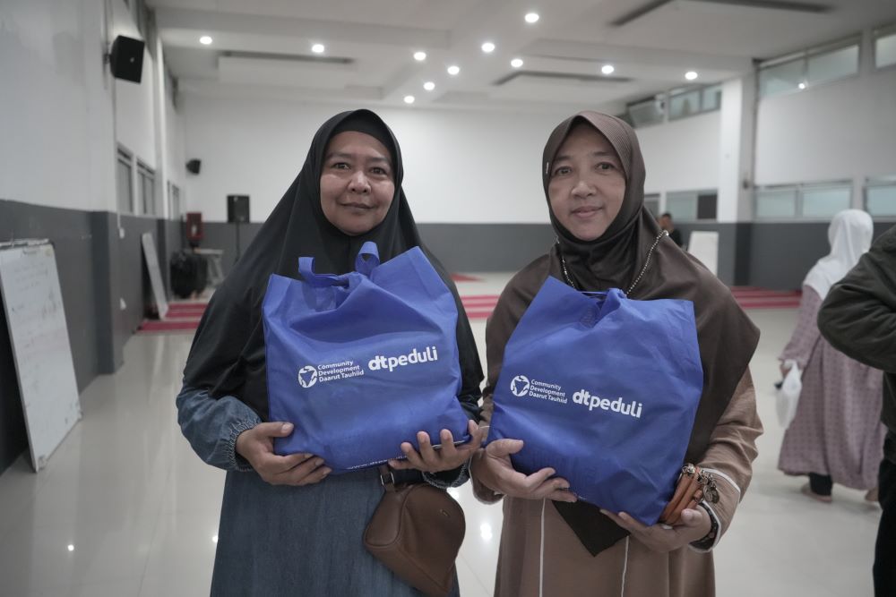 DTPEDULI.ORG | BANDUNG — DT Peduli Bandung menyalurkan paket sembako bagi 500 penerima manfaat di Eco Pesantren 1. Kegiatan ini menjadi bagian dari rangkaian Milad DT ke-35 yang mengusung semangat kepedulian dan kebermanfaatan untuk masyarakat sekitar, pada Sabtu (06/12/2025).