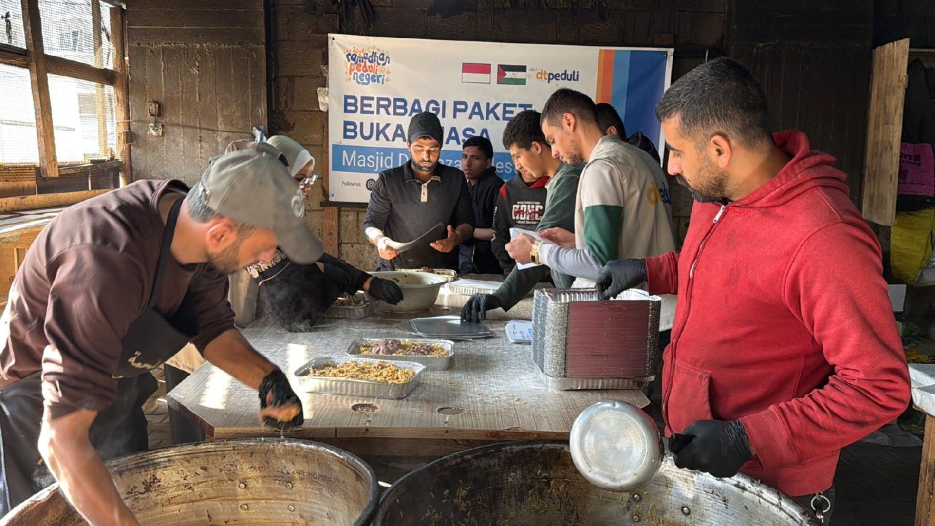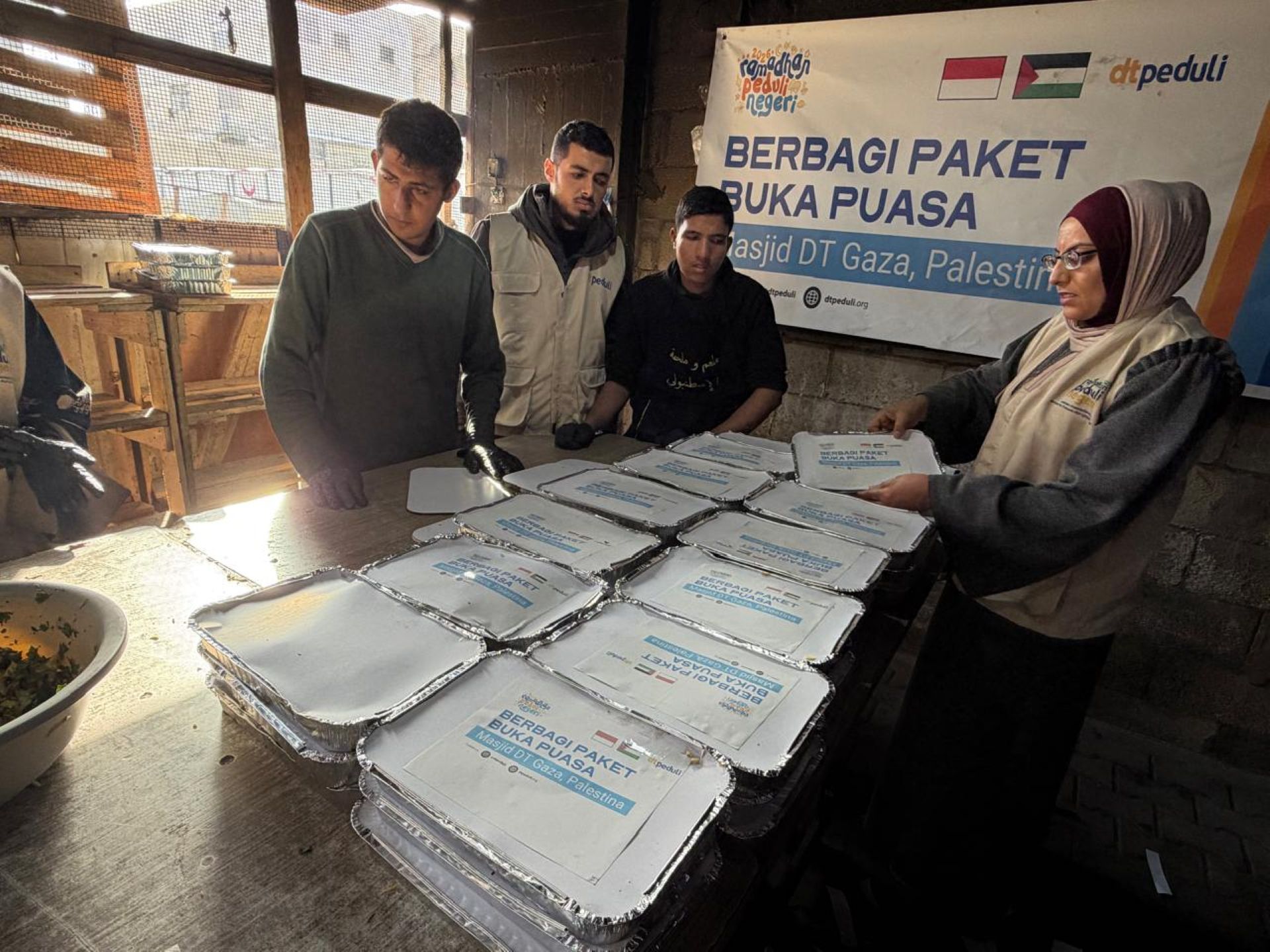 DTPEDULI.ORG | GAZA – DT Peduli memberikan perhatian ekstra terhadap kualitas makanan bagi para penyintas di Jalur Gaza. Pada Rabu (4/3/2026), tim relawan mengemas ratusan paket buka puasa menggunakan mealbox berbahan alumunium foil untuk memastikan hidangan tetap hangat, bersih, dan higienis saat diterima oleh jamaah dan santri di Masjid DT Gaza.
