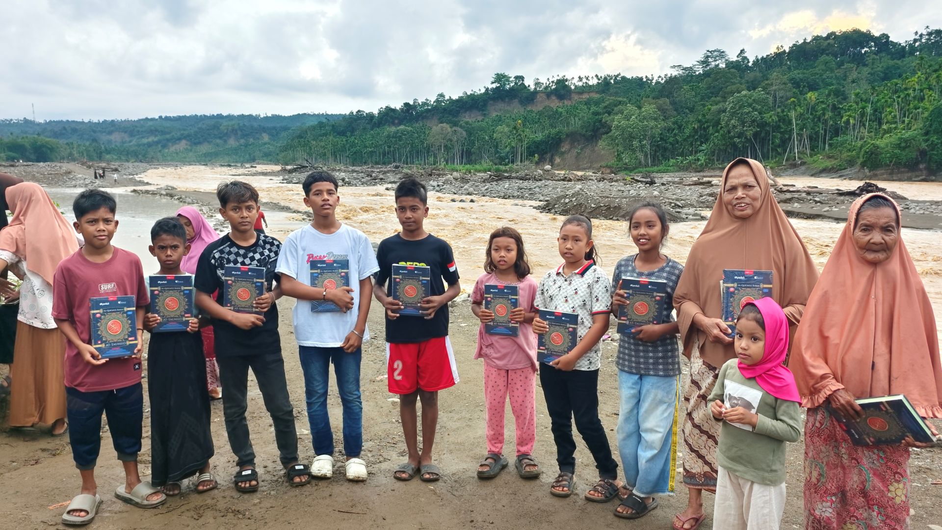 “Senang sekali. Ini yang diperlukan anak-anak. Kami sangat senang kalau sudah punya Al-Qur’an lagi, karena semuanya sudah hilang kemarin,” ungkapnya sambil terisak.