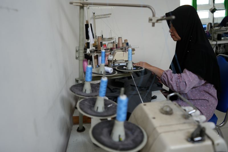 Efi, yang telah berpengalaman menjahit di konveksi, merasakan peningkatan signifikan setelah mengikuti pelatihan dari awal. “Yang sebelumnya enggak bisa, jadi bisa,” katanya. Kini ia mampu membuat jaket, kaus, hingga kemeja.