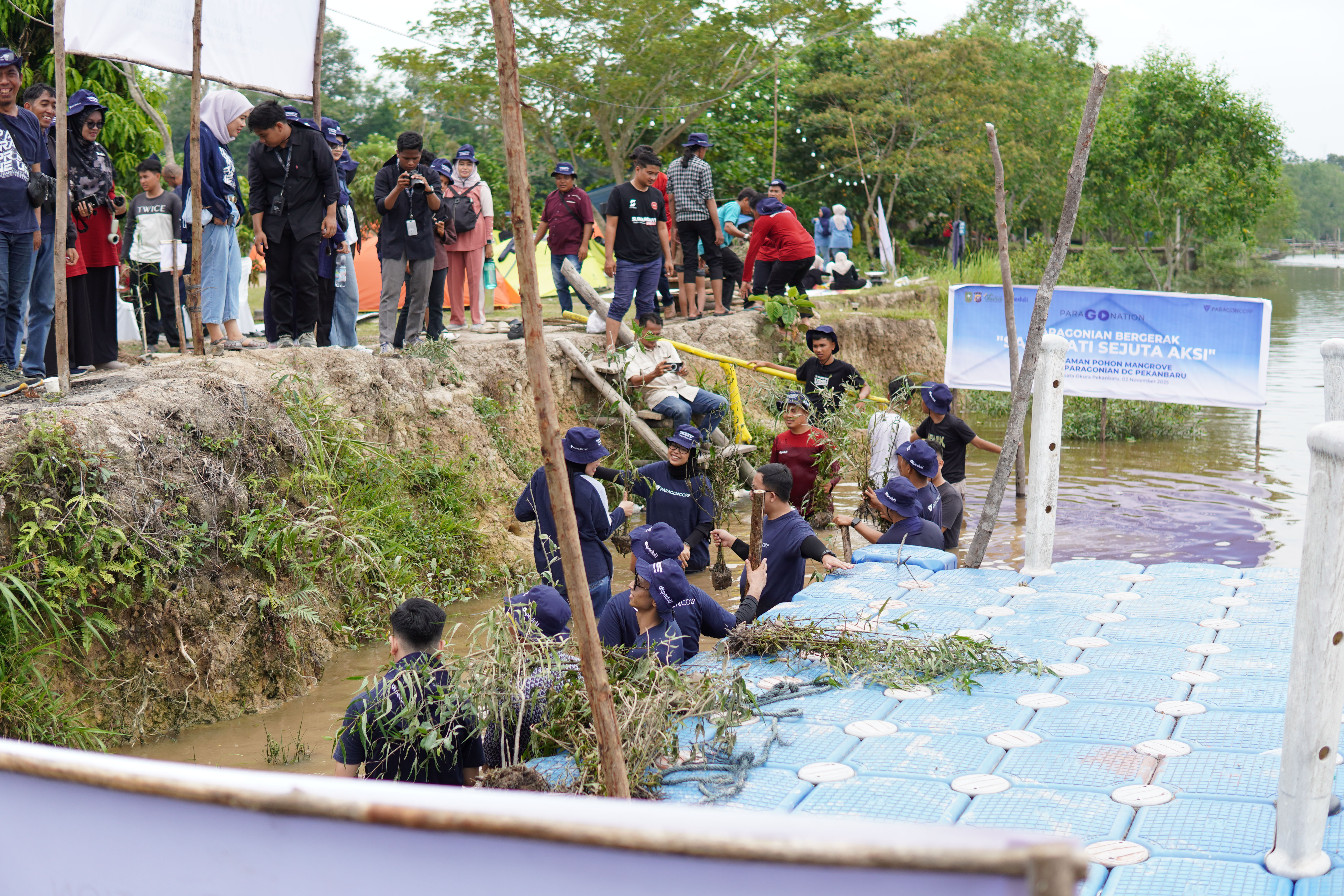 DTPEDULI.ORG | PEKANBARU - DT Peduli Riau bersama ParagonCorp kembali bersinergi dalam aksi nyata pelestarian lingkungan, dengan melaksanakan Program Penanaman Pohon Mangrove di Taman Wisata Okura, Jalan Tebing Tinggi, Kelurahan Okura, Kecamatan Rumbai Pesisir, Kota Pekanbaru, pada Ahad (2/11/2025).