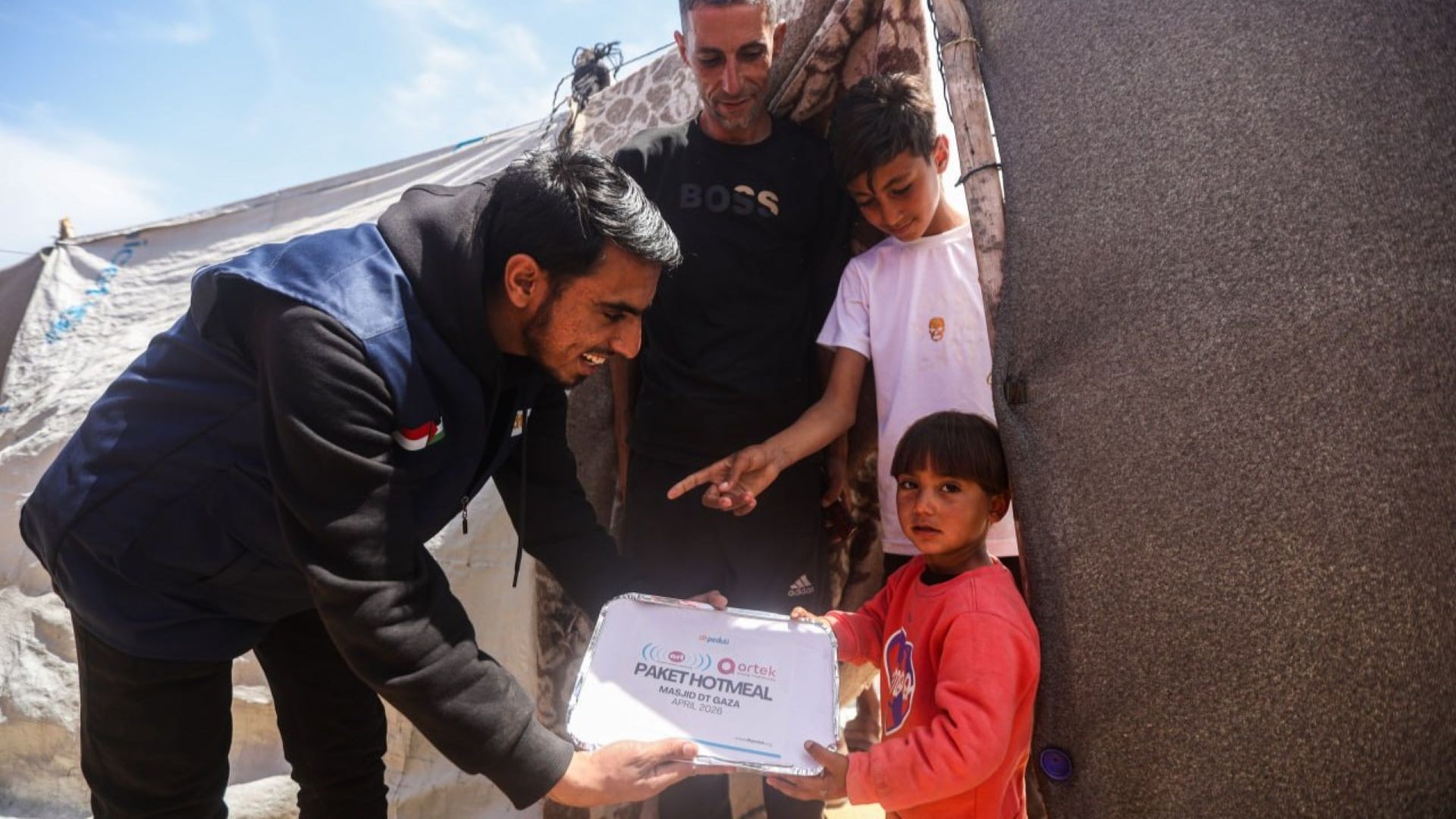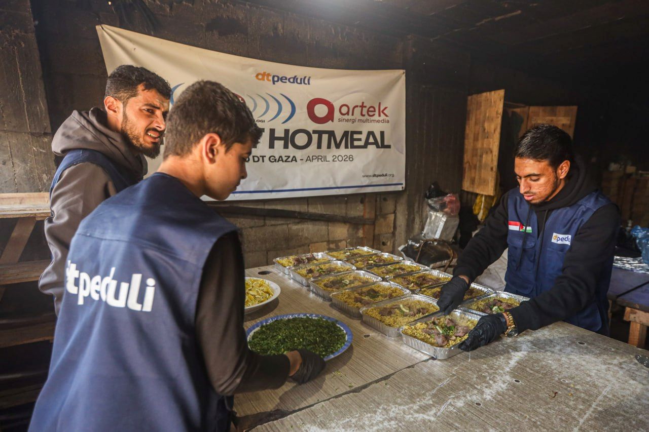 DT Peduli menyalurkan sebanyak 450 paket hotmeal yang diperuntukkan bagi sekitar 900 jiwa. Pembagian dilakukan di area tenda pengungsian yang berlokasi kurang lebih 200 meter dari Masjid DT Gaza. Lokasi ini dipilih karena merupakan area dengan konsentrasi pengungsi tinggi yang sebagian besar terdiri dari ibu, anak-anak, dan lansia. Setiap paket hotmeal dirancang untuk porsi dua orang sehingga dapat menjangkau lebih banyak penerima manfaat.