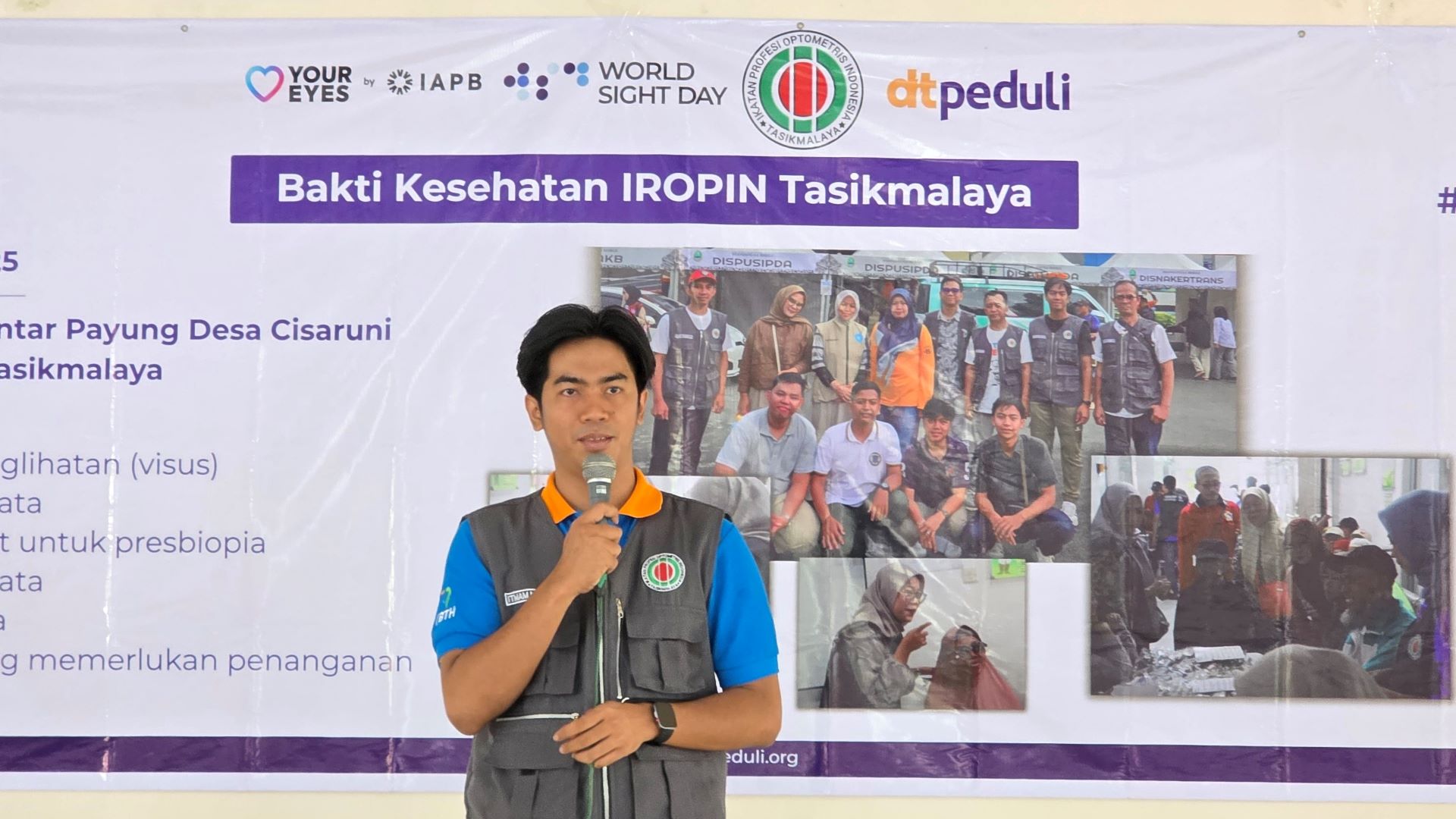 Sebelum pemeriksaan, IROPIN memberikan penyuluhan yang mencakup lima tips penting menjaga kesehatan mata, di antaranya pemeriksaan rutin minimal 6 bulan sekali dan melindungi mata dari paparan sinar UV.