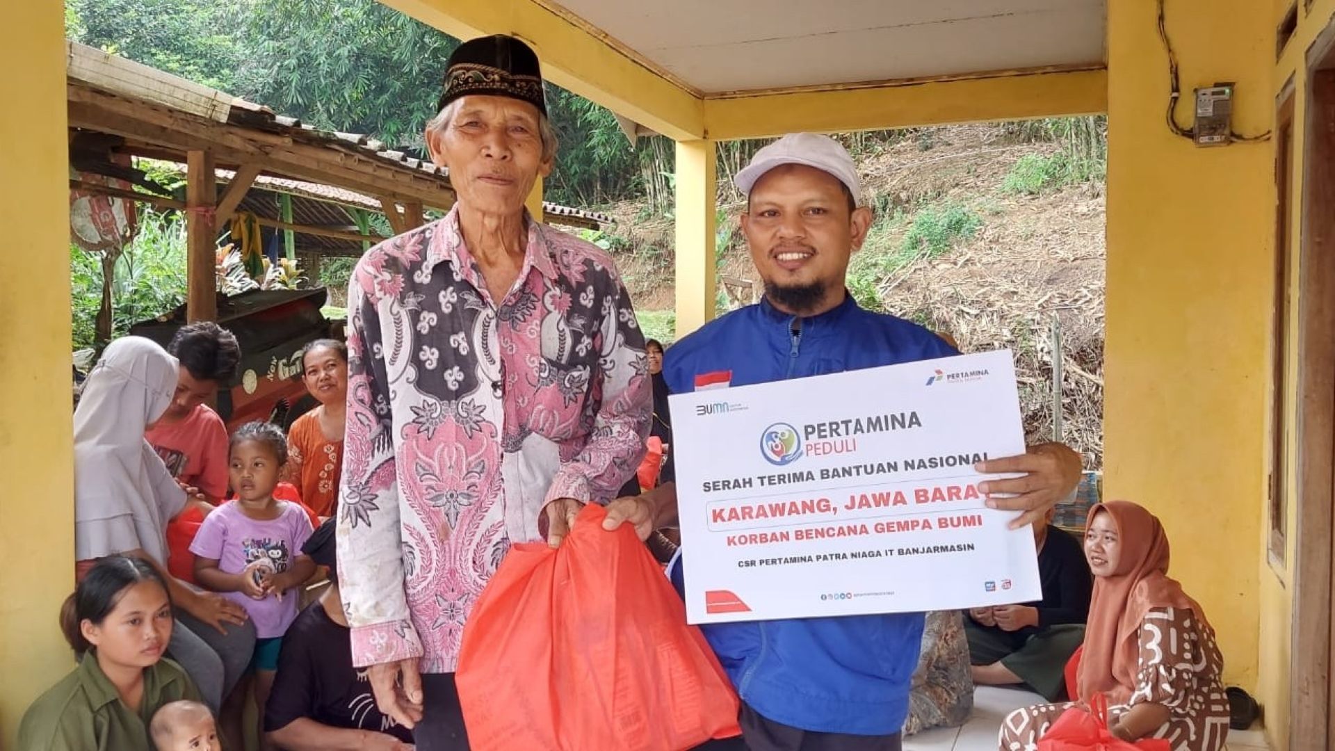 DTPEDULI.ORG | KARAWANG – Pertamina Patra Niaga Integrated Terminal (IT) Banjarmasin menyalurkan bantuan kemanusiaan bagi korban gempa di Kabupaten Karawang, pada Ahad (24/8/2025). Penyaluran bantuan dilakukan melalui DT Peduli dan diterima langsung oleh warga di Kampung Kopi, Desa Kutalanggeng, Kecamatan Tegalwaru.