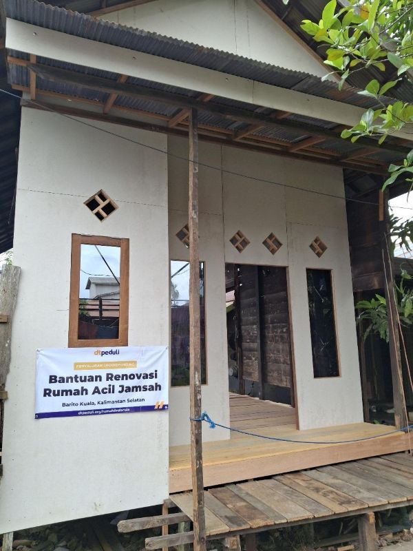 DTPEDULI.ORG | BARITO KUALA – DT Peduli Kalimantan Selatan meresmikan tahap pertama renovasi rumah Jamsah yang akrab disapa Acil Jamsah, di Barito Kuala, pada Jumat (12/9/2025). Program ini merupakan wujud nyata komitmen DT Peduli dalam menghadirkan hunian layak bagi masyarakat kurang mampu.