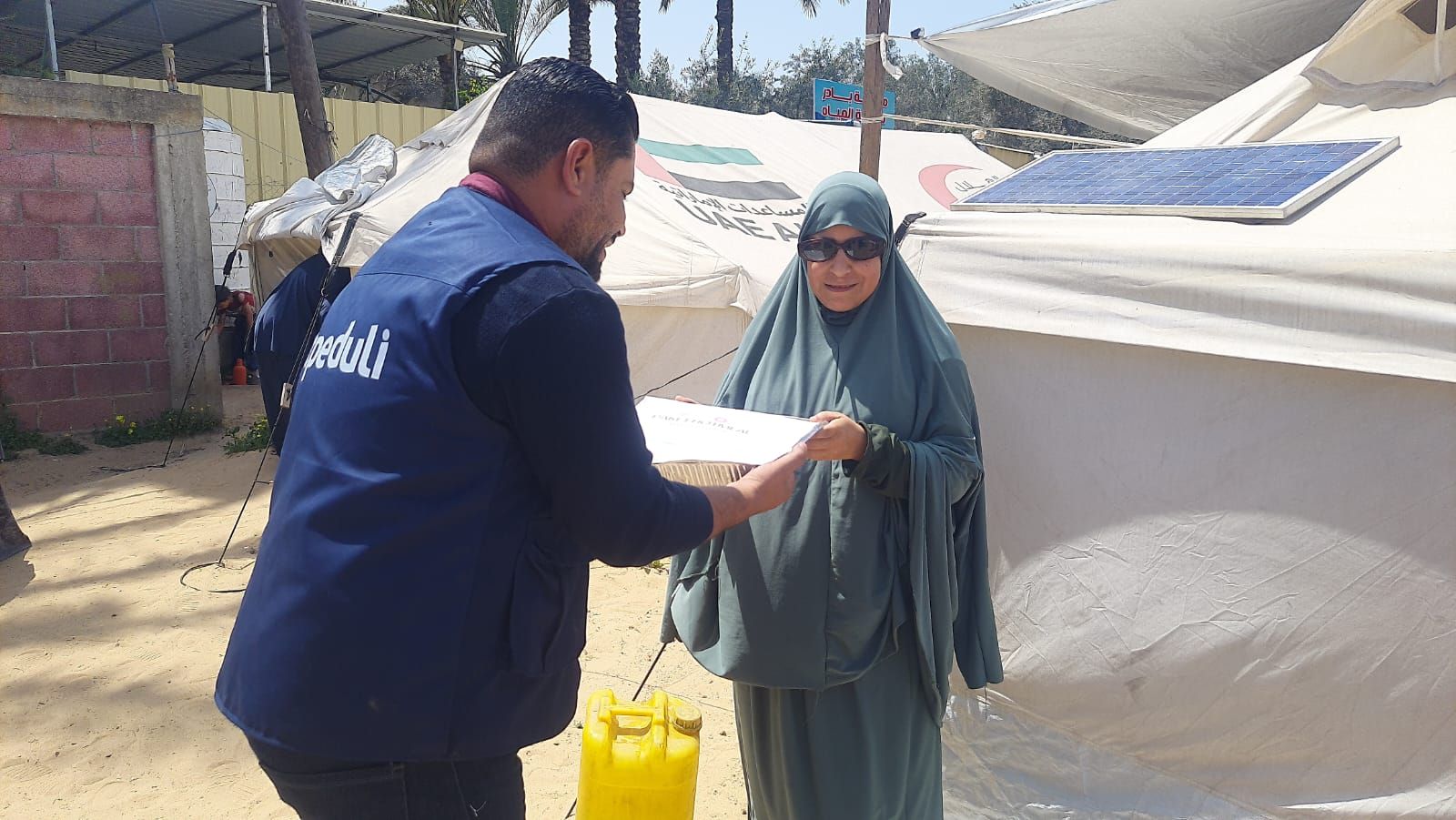 Salah satu titik penyaluran utama dalam aksi kali ini adalah Kamp Dzawil Himam, sebuah pemukiman darurat yang dikhususkan bagi pengungsi penyandang disabilitas, khususnya tunanetra. Kamp ini menampung sekitar 20 keluarga atau kurang lebih 50 jiwa yang hidup dalam keterbatasan fisik di tengah situasi perang.