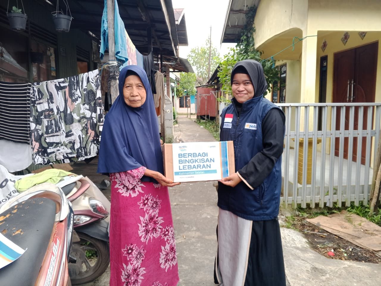 "Alhamdulillah, barakat banar (berkah sekali). Ulun (saya) tidak menyangka dapat bingkisan sebagus ini. Isinya lengkap sekali untuk makan lebaran nanti. Terima kasih donatur DT Peduli, semoga pian-pian barataan dipanjangkan umur dan diluaskan rezekinya," ucap Siti penuh haru.