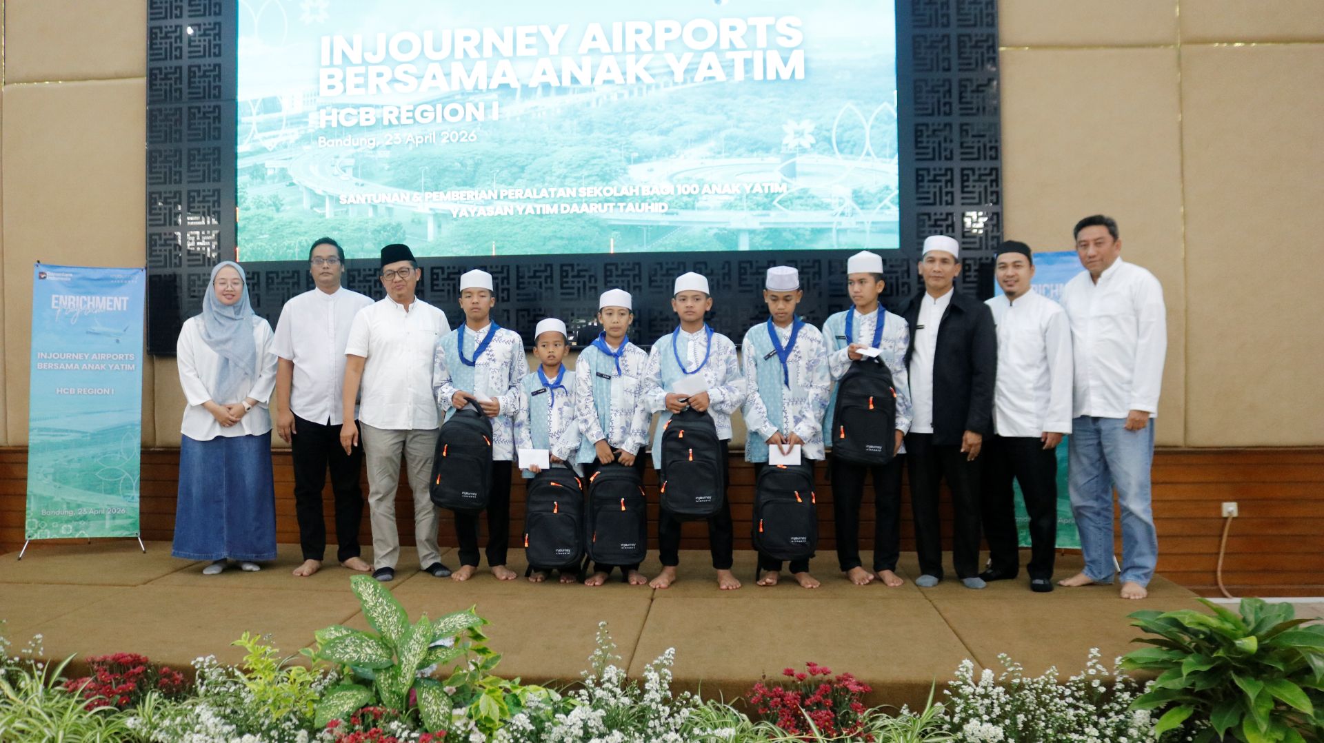 DTPEDULI.ORG | BANDUNG – PT Angkasa Pura Indonesia Regional 1 bekerja sama dengan DT Peduli menyalurkan santunan kepada anak-anak yatim, Kamis (23/4/2026). Acara yang digelar di Aula Daarul Hajj, Pondok Pesantren Daarut Tauhiid ini diikuti oleh 100 anak yatim dari zona model Gegerkalong.