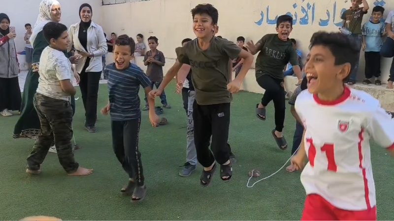 Suara penuh syukur juga datang dari Ghadah, pengungsi asal Tulkarem.