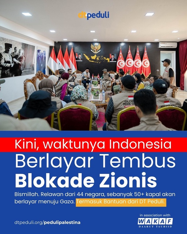 DT Peduli pun ikut serta, menjadi bagian dari ikhtiar besar menembus blokade laut dan menyampaikan bantuan langsung kepada saudara-saudara kita di Gaza.