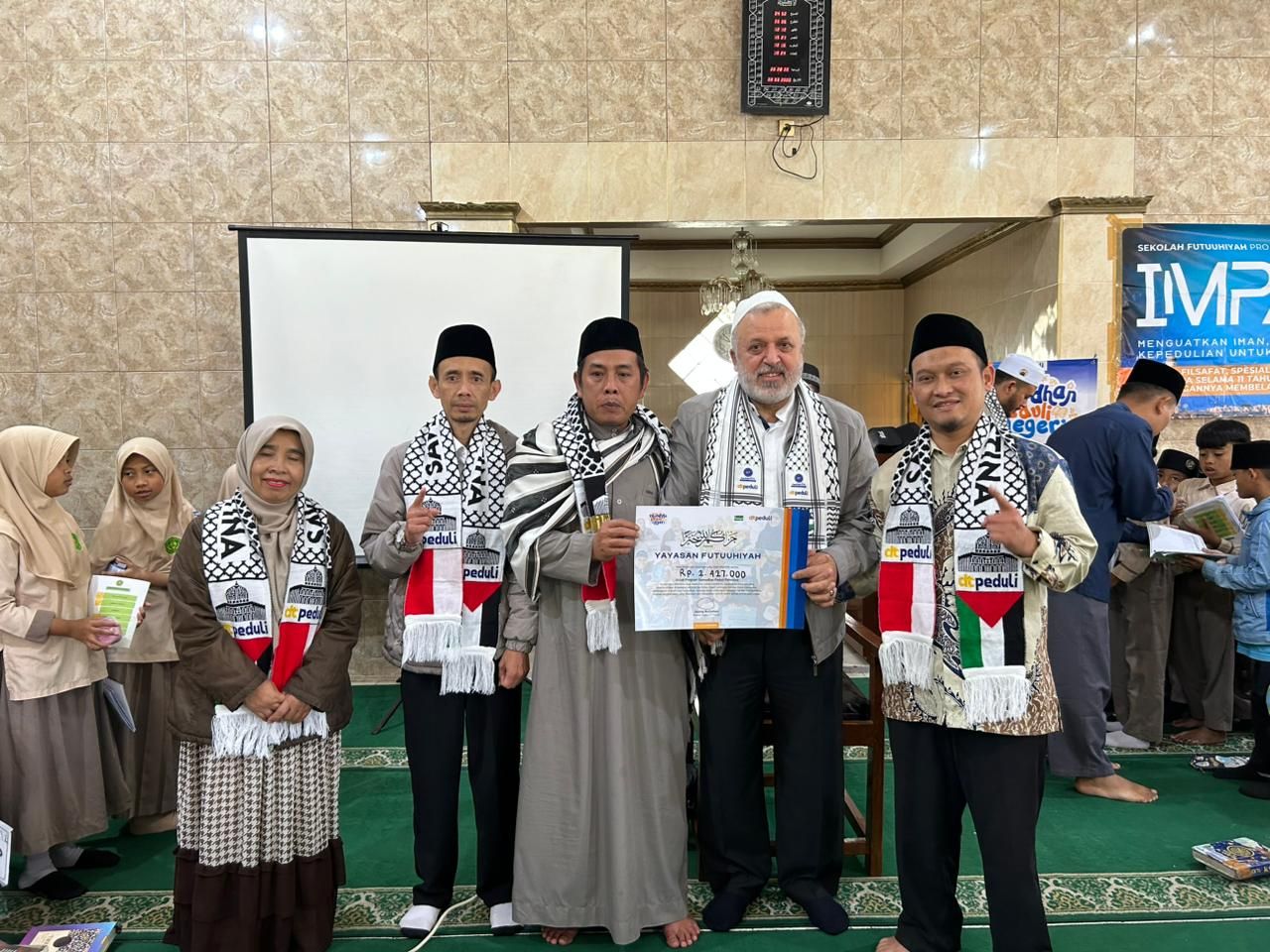 Kegiatan ini juga menjadi ajang penggalangan donasi untuk membantu saudara-saudara di Palestina. Antusiasme jamaah terlihat dari banyaknya masyarakat yang hadir untuk menyimak tausiyah serta turut berpartisipasi dalam penyaluran donasi.