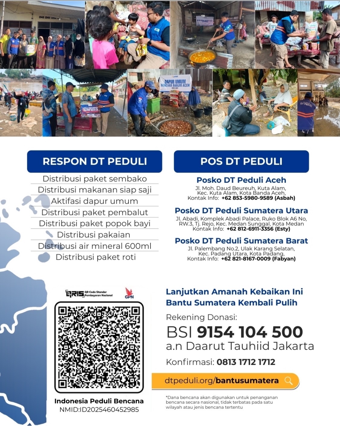 Alhamdulillah, DT Peduli tengah bergerak cepat dengan rangkaian respon mulai dari bantuan darurat, pemulihan awal, hingga mempersiapkan pendampingan berkelanjutan agar para penyintas bisa bangkit perlahan.